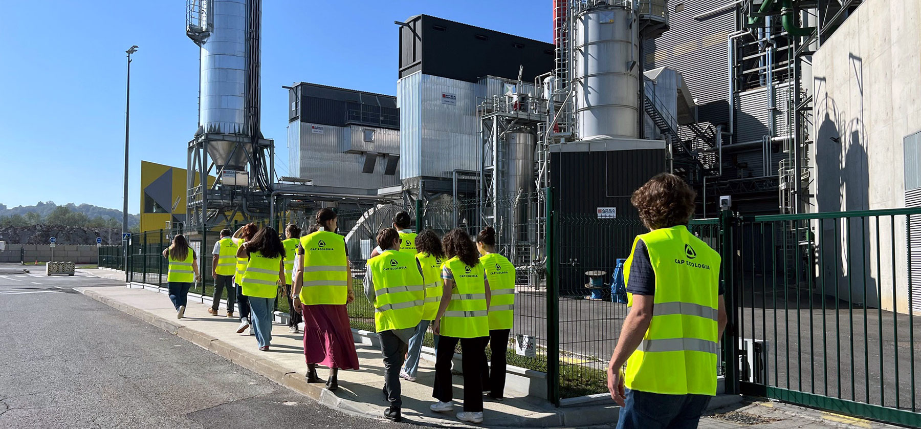 L’après-midi a été consacrée à une visite de terrain sur le site Cap Écologia à Lescar. En groupes, les participants ont exploré les plateformes de compostage et les installations de valorisation énergétique, toutes situées sur le même site. Ils ont pu découvrir comment les déchets du quotidien deviennent des ressources : des biodéchets transformés en compost et des ordures ménagères converties en énergie. L’incinérateur de Lescar est relié au réseau de chaleur urbain de l’Agglomération de Pau Béarn Pyrénées, illustrant ainsi parfaitement cette valorisation des déchets puisqu’il permet de fournir chaleur et électricité aux habitants.