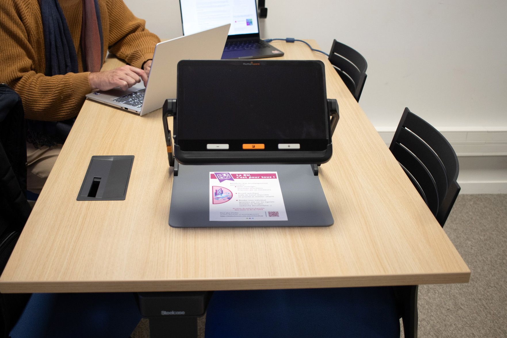 - loupes électroniques qui fournissent un zoom de haute qualité, tant pour les lectures de près (par exemple, les livres de cours) que pour celles de loin (comme le tableau de l’enseignant) ;