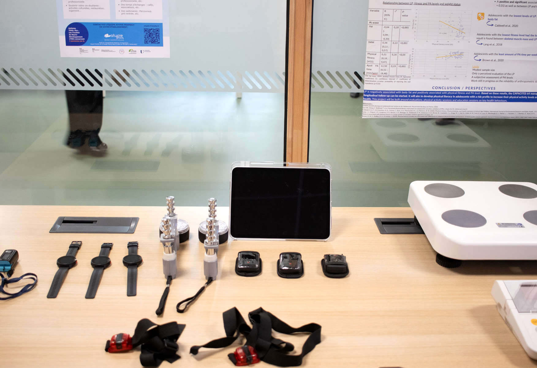Côté sport santé, les projets s’appuient sur des équipements spécifiques de dernière génération : montres connectées cardiofréquencemètres, balances impédancemètres, dynamomètres handgrip, accéléromètres permettant l’analyse de l’activité physique et du sommeil, etc.