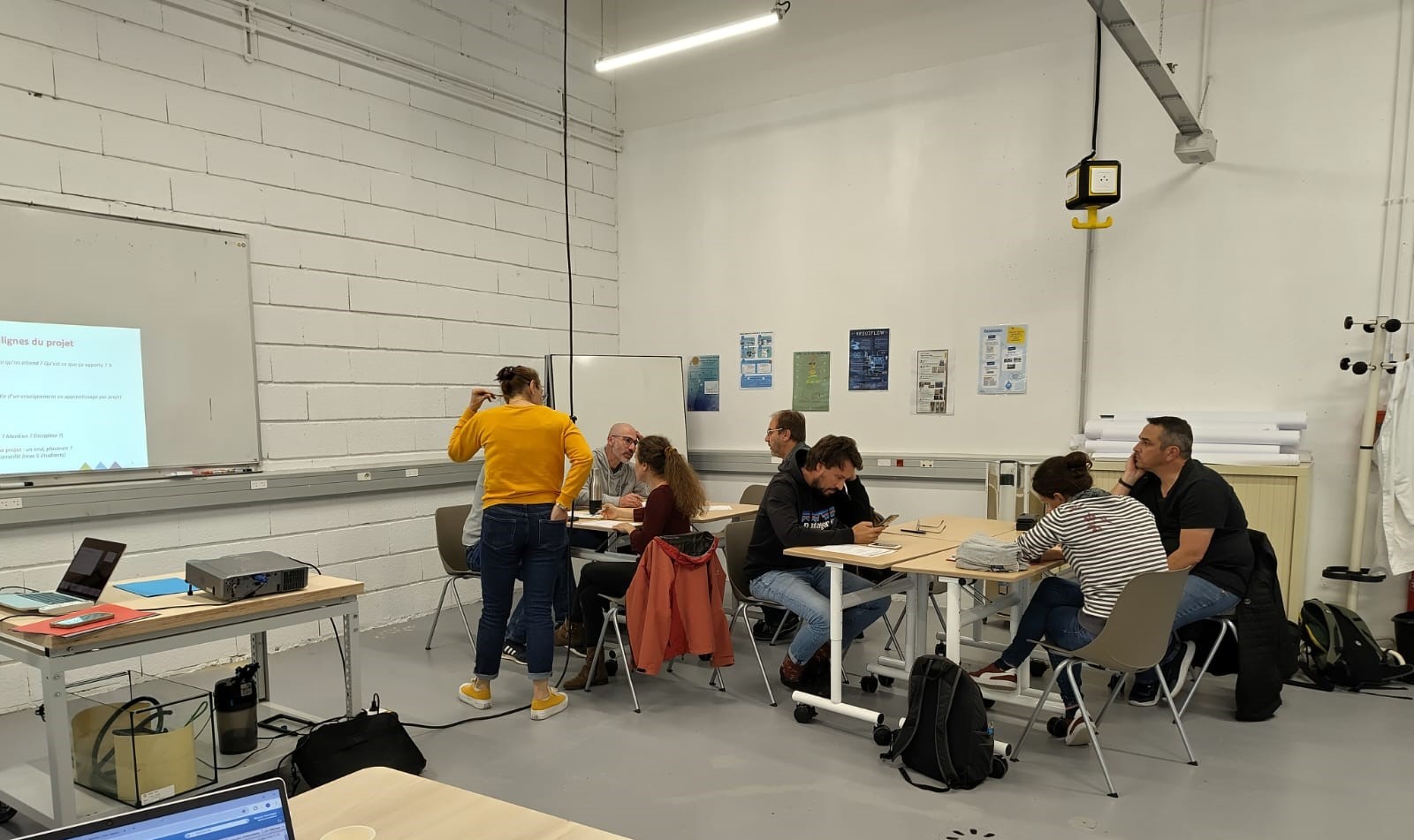 Au cours de l’après-midi, le fablab a accueilli enseignants et partenaires du territoire afin d’imaginer et de concevoir de nouveaux projets pédagogiques en lien avec l’eau. Cécile Garcia, ingénieure pédagogique, a animé l’atelier en proposant plusieurs temps de réflexion autour de la pédagogie par projet, encourageant ainsi chacun à développer ses idées.