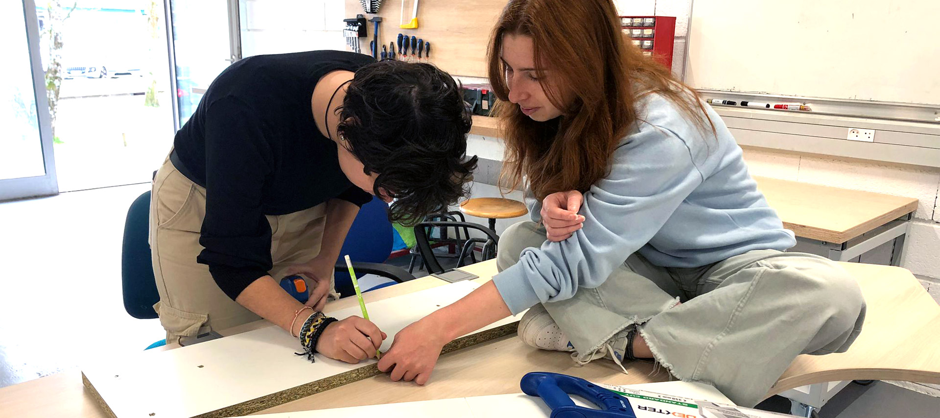 Au cours de l’année, l’espace réflexion et partage est principalement utilisé par les étudiants et leurs tuteurs lors de leurs unités d’enseignement (UE) « projet Fablab », leur permettant ainsi de travailler, en groupe ou seul, avec leur ordinateur et documents de projet.