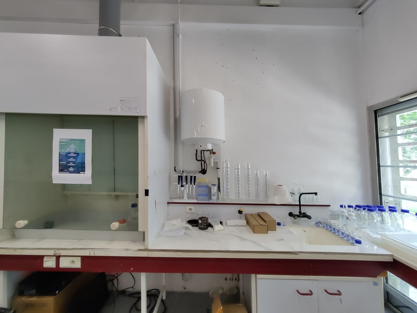Composé de 5 paillasses en îlot central, d’une hotte aspirante, d’un évier et de toute verrerie et matériel de base nécessaires aux expérimentations scientifiques, le laboratoire permet aux étudiants en biologie et physique-chimie de perfectionner leurs techniques et de gagner en compétences au fil de leur cursus universitaire.
