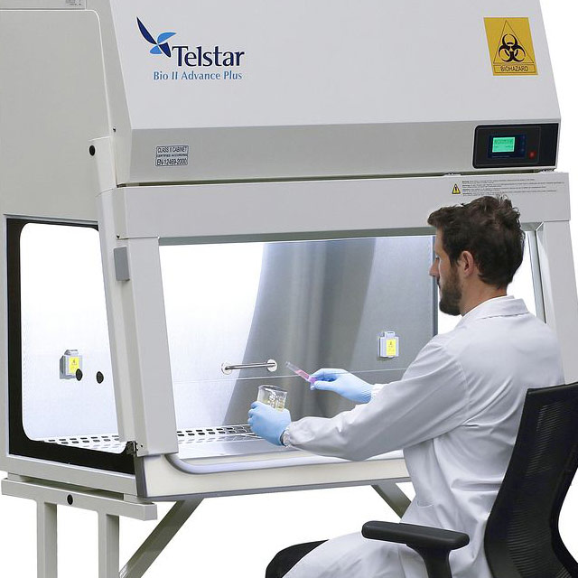 Équipement permettant de se protéger lors de manipulations de substances dangereuses. Couplé à un incubateur, il permet de travailler sur des cultures cellulaires en milieu partiellement stérile.