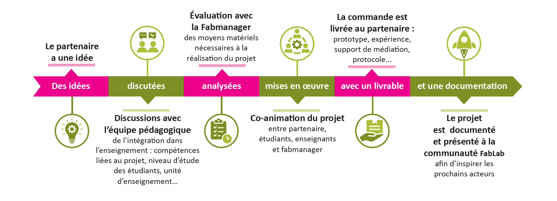 - Offrir un espace collaboratif où les étudiants et partenaires peuvent transformer des idées en realisations concrètes.