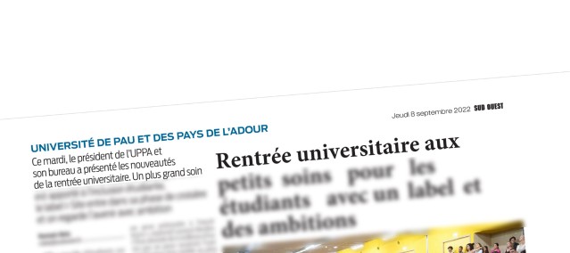 ▶ 07/09/2022 | Sud Ouest | Pyrénées-Atlantiques : une rentrée universitaire aux petits soins pour les étudiants de l’UPPA, un label et de grandes ambitions