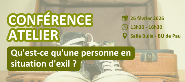 Conférence atelier "Qu'est-ce qu'une personne en situation d'exil ?"Campus de Pau - salle Bulle, bibliothèque universitaire