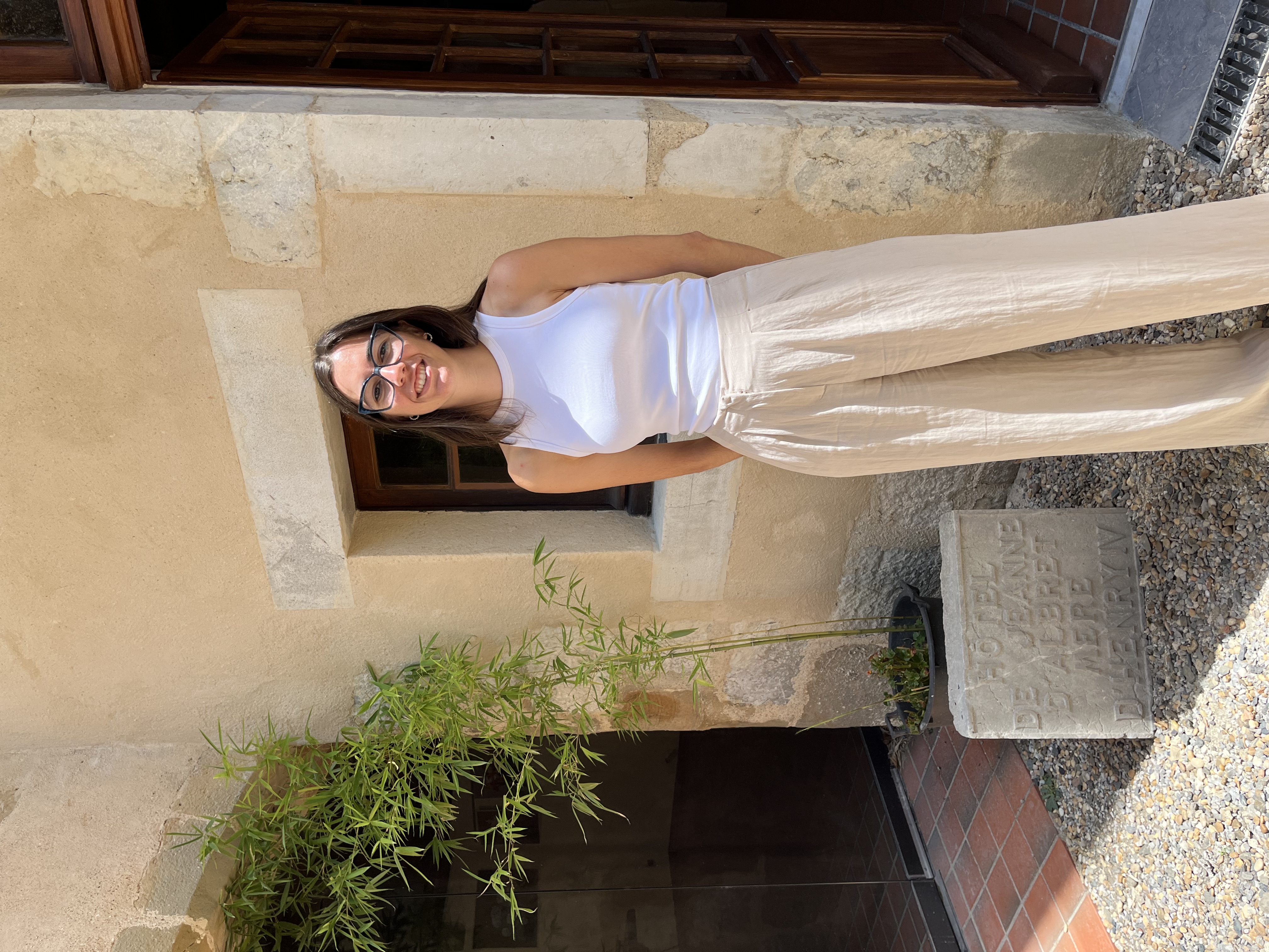 Alba, étudiante en langues modernes à l’Université de Saragosse, se destine à devenir professeure de français. Après un Erasmus en Bretagne qui a confirmé sa passion pour la langue et la culture françaises, elle a choisi d’effectuer son stage au musée Jeanne d’Albret à Orthez. Elle y a assuré des visites guidées en français et en espagnol, accueillant des publics variés. Mais son implication allait plus loin : Alba a également organisé des groupes de discussion bilingues autour de thématiques inspirées de l’époque de Jeanne d’Albret. Lors de notre visite, les échanges portaient sur… l’école maternelle ! Une manière originale de mêler histoire, patrimoine et actualité, tout en favorisant le dialogue entre visiteurs.