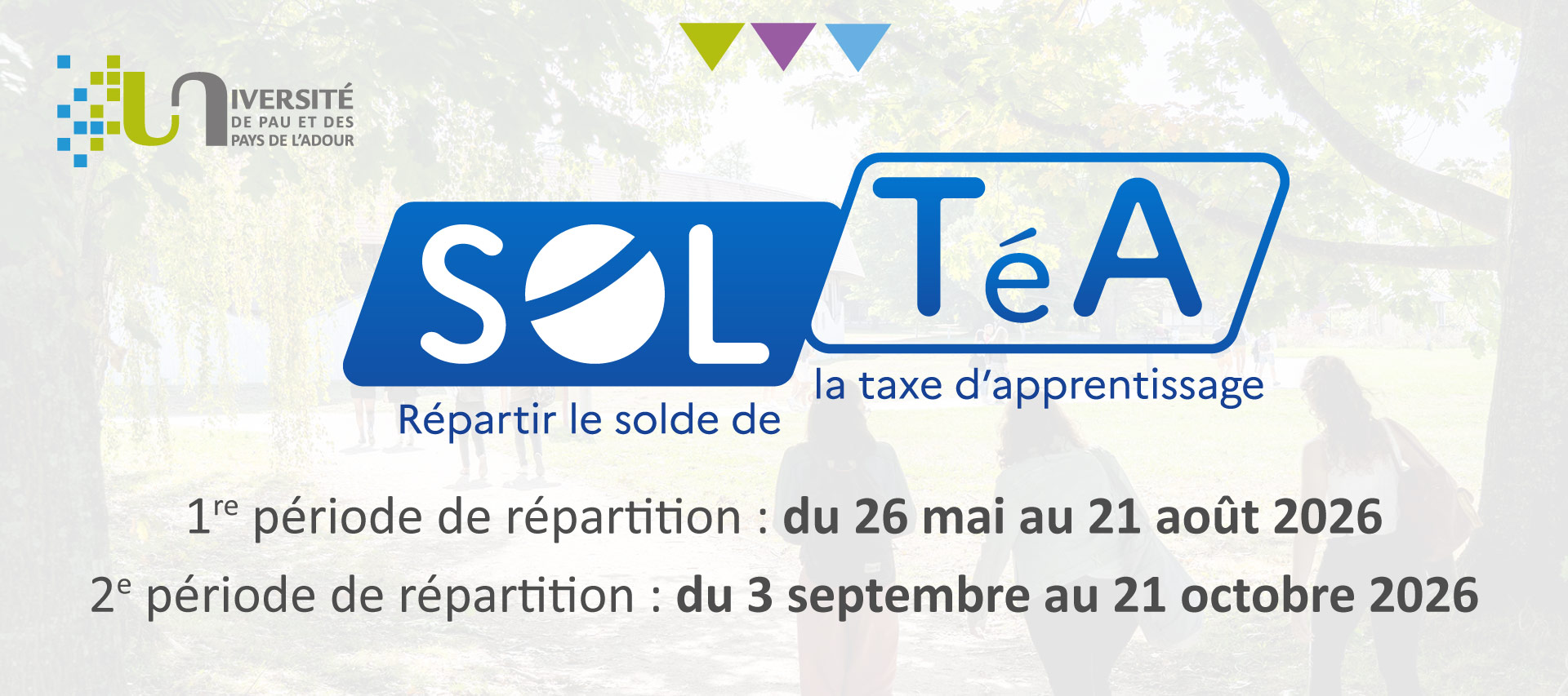 La répartition du solde de la taxe d’apprentissage pour les entreprises est possible cette année du 26 mai au 21 juin 2026 et du 3 septembre au 21 octobre 2026, via la plateforme SOLTéA. Vous trouverez en bas de page les liens vers toutes les formations de l’UPPA éligibles, y compris nos écoles d'ingénieurs, notre IAE et nos IUT.